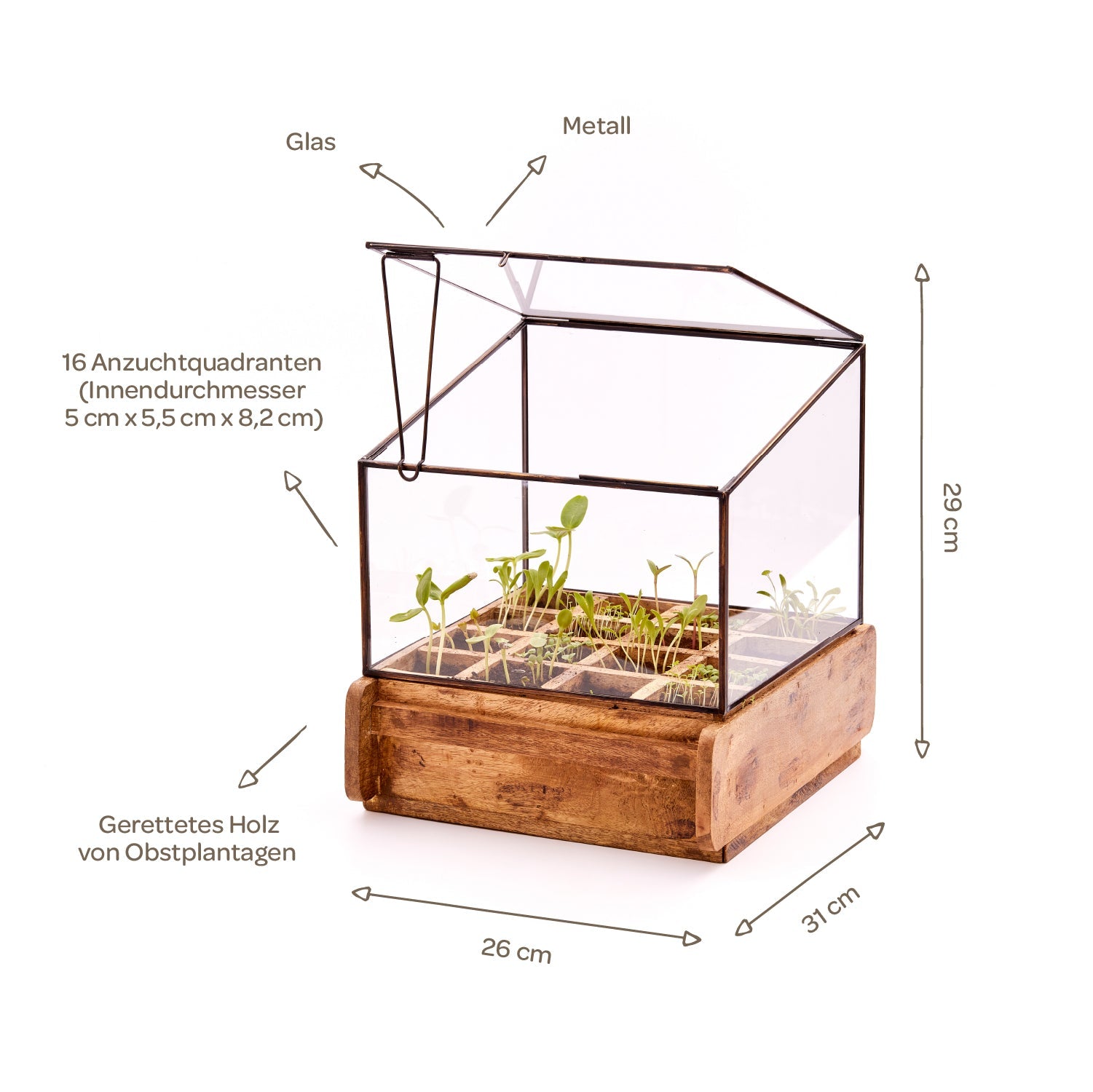 - 🖐️ Handgefertigt: Jedes Gewächshaus ist ein Unikat mit individuellem Look und gelasertem Logo.